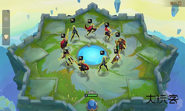 在进入游戏后,参与本局比赛的八名玩家的小小英雄会共同传送到选秀区域,在选秀区域抢到心仪的装备或棋子后(在每个阶段的第三个小回合都会有选秀环节)八名玩家会各自传送到各自的棋盘上。