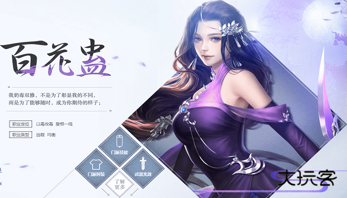 蜀山,天煞,无名,少林,侠隐,百花医,百花蛊七大职业,每个职业都个性鲜明,飘逸帅气的蜀山,坚如磐石的少林,刚猛蛮横的天煞,鬼马精灵的侠隐,毒奶双修的百花蛊等,在群战中定位清晰,明确分工,打出完美配合!一起战,就是痛快!