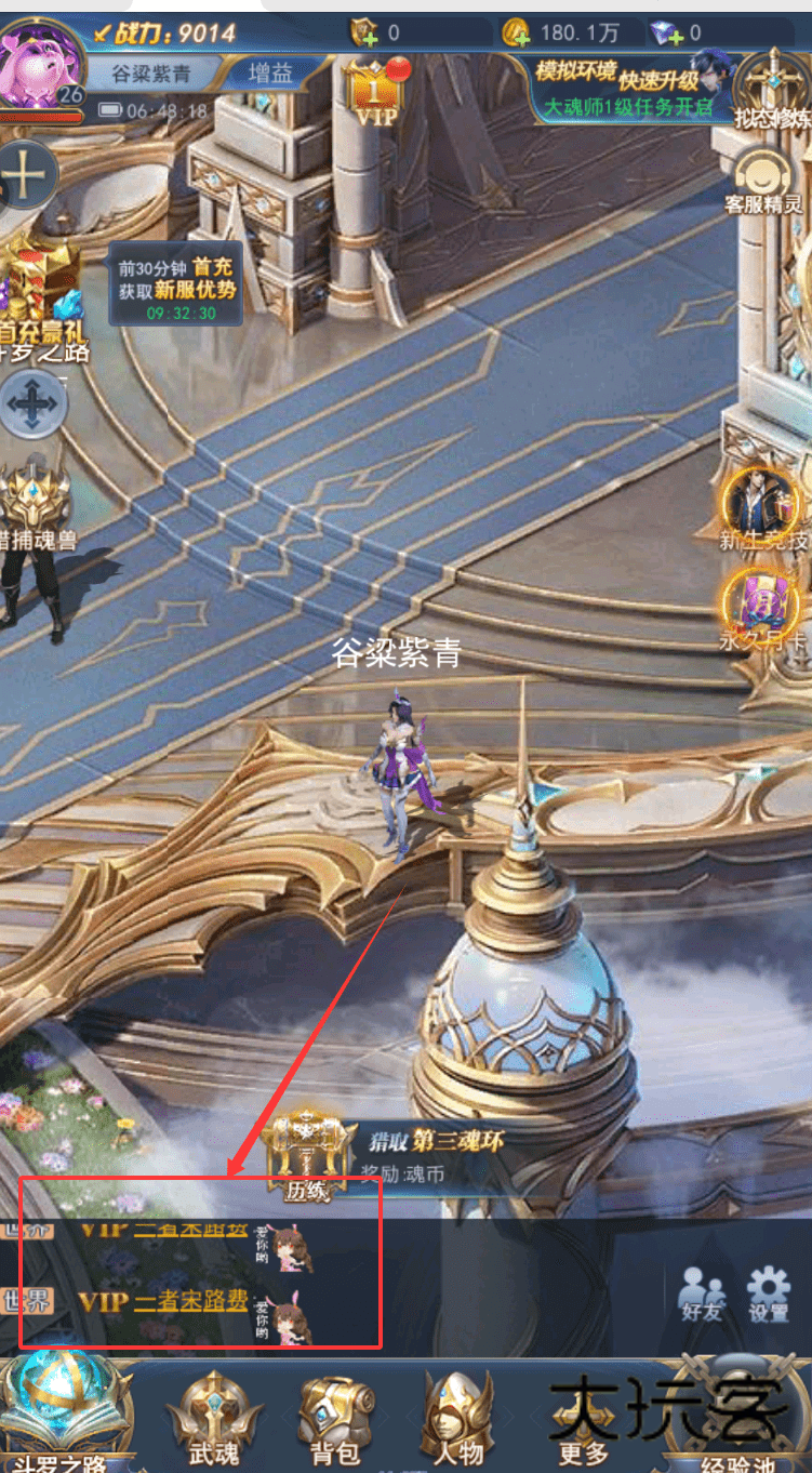 2、同时别忘了点击“世界”和“斗罗之路”图标,查看有没有能领的奖励和任务。