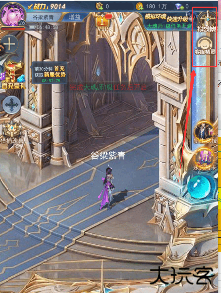 1、然后记得去“增益”里开启“模拟环境”,这个功能能帮你快速升级,尽早开启“大魂师1级”的主线任务哦。