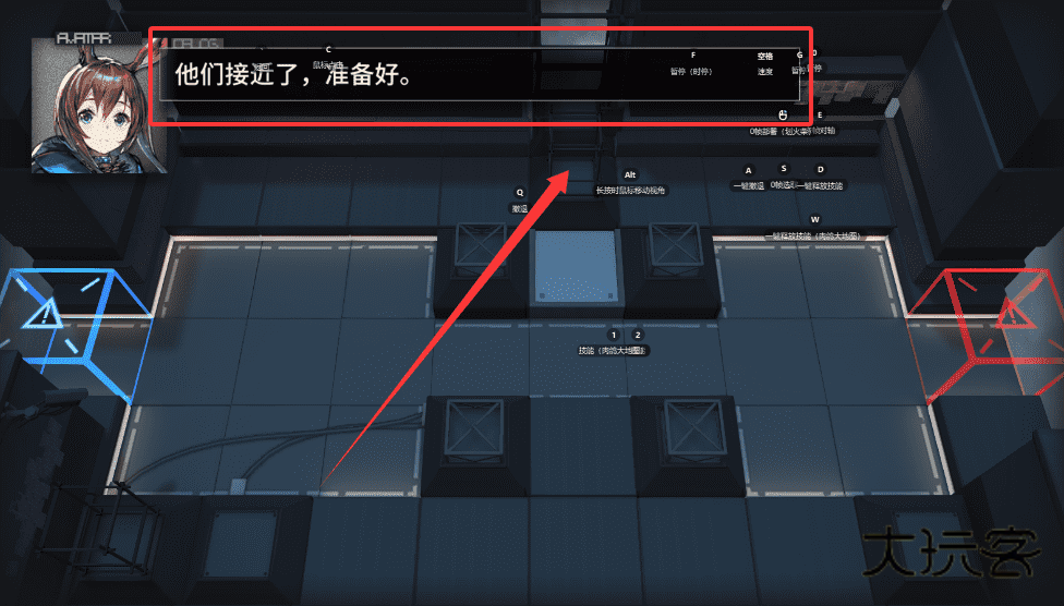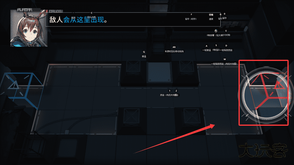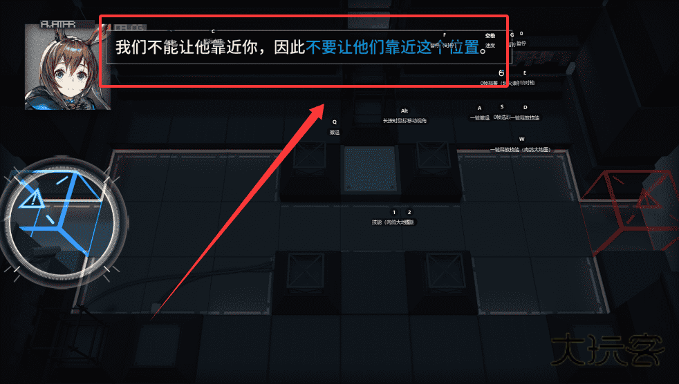 3、选择好你的角色后,利用画面中的箭头提示,别让敌人靠近指定位置哦。