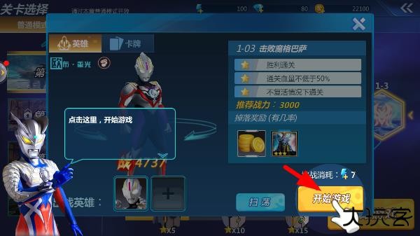 4、确认所选关卡后,点击开始游戏按钮进入。