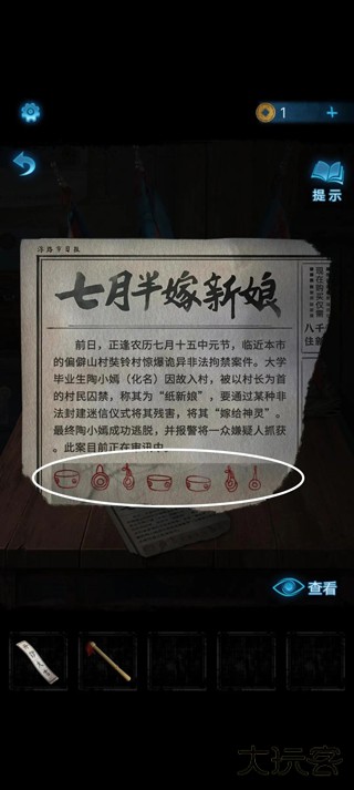 17、掀开箱子前覆盖的红色布帘。靠近后,用小木棒按照报纸上看到的图案顺序依次敲击箱面的鼓点区域。正确敲击后箱子自动开启。