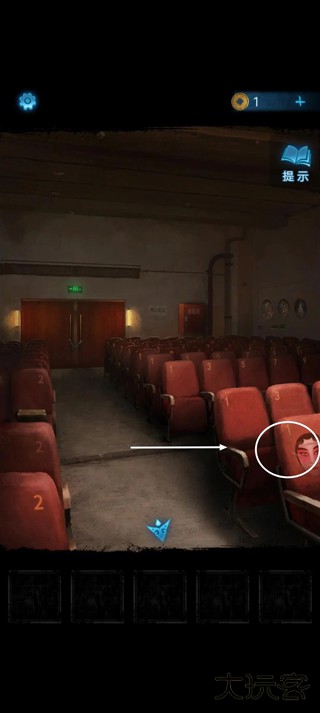 6、返回观众席场景,点击场景右侧墙壁上的花纹装置。