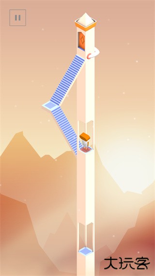 站上中间的台阶,把下方那个台阶拖上来拼好,顺着台阶走到最顶端就能通关。