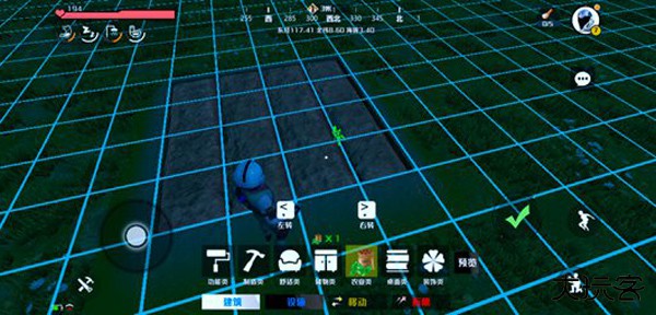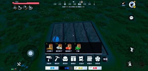 2、点击游戏界面左下角的建造功能区按钮。在弹出的建造菜单中,定位并选择地基选项。在规划的种植区域内放置该地基。