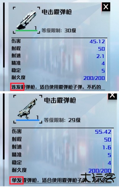 霰弹枪依据发射模式划分为连发与单发两类。连发霰弹枪支持长按实现连续射击,对应的伤害效果相对较小;单发霰弹枪则需要玩家手动点射触发每次攻击,但其伤害输出高于连发型号。