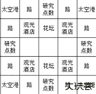 17. 沙漠获取神社建筑后,拆除雪原半区研究布局,在沙漠地区新建 5×5 研究布局。完成后将草原、雪原、沙漠三处 5×5 研究区中心区域用花坛连接(布局参照图示)。初始小型经济区可保留或移除(因观光度低,飞船停泊率有限)。