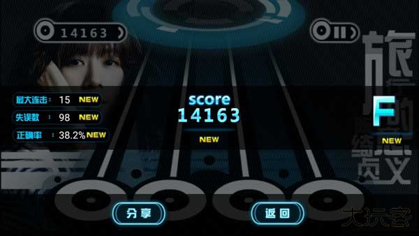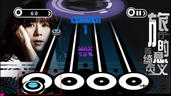2、选定曲目开始游戏后,系统会提供三秒钟的准备时间。游戏过程中,音符将从轨道中滑出,玩家需使用四根手指对位于轨道末端的对应音符进行点击操作。每次成功点击目标音符,界面左上方的实时分数会随之累积,玩家的操作准确度与点击数量直接影响最终得分高低。