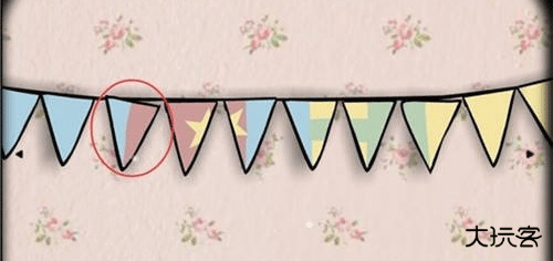 1、扮演生日派对主角,先去选择挂在墙上的彩旗。