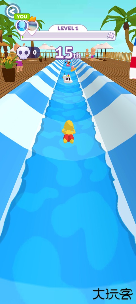 3、创新设计突破常规跑酷,引入空中滑行与近道系统。玩家可选择主动冲出赛道进行滑翔操作,若能在空中精准控制降落至下方滑道或直接进入终点水池区域,即可达成路程的显著缩减。