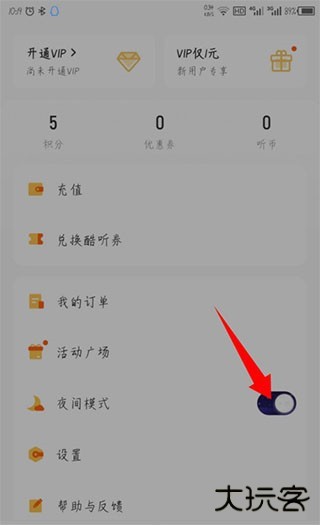 4、如果想关闭夜间模式,和开启一样,点击一下滑块就可以关闭