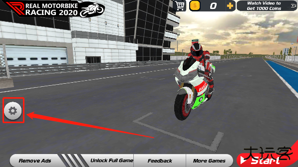 1、打开极速骑行4手游中文版,点击左侧的设置按钮。
