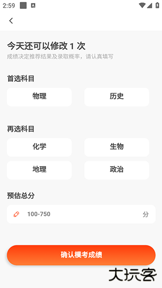 3、然后选择科目和预估分数等信息