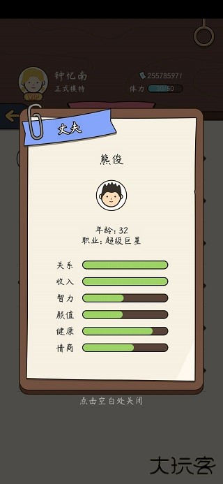 3、游戏里的人物角色,比如你的爸妈、老公老婆,孩子等等,都是活生生的人,会主动和你互动,对结果产生影响。