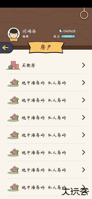 记住,一定要留一套自己住,买一套列表里最便宜的那个房子(第一个),因为房子的机制就是你必须要有一个地方住,除非你就一套都不买(在买入和卖出之间的时间间隔里,你可以把他们全部租出去,600000一年一共要租5年)