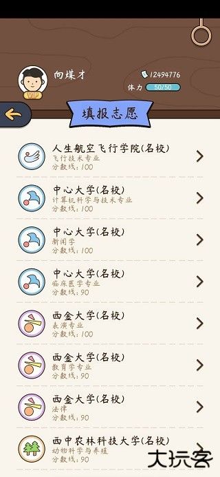 根据自己的属性选大学,比如颜值高选表演系,智商高选律师,程序员…
