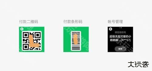 使用:已开通手表付款码,每次进入侧边栏“支付”入口即可展示付款码,左滑可切换条形码和解绑页。