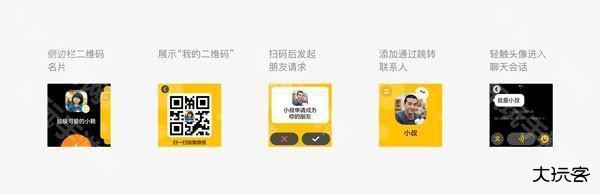 二维码加朋友:在侧边栏轻触头像展示孩子的二维码名片,亲人、老师可以用微信扫码并发起朋友请求,在手表通过请求后会添加为朋友。