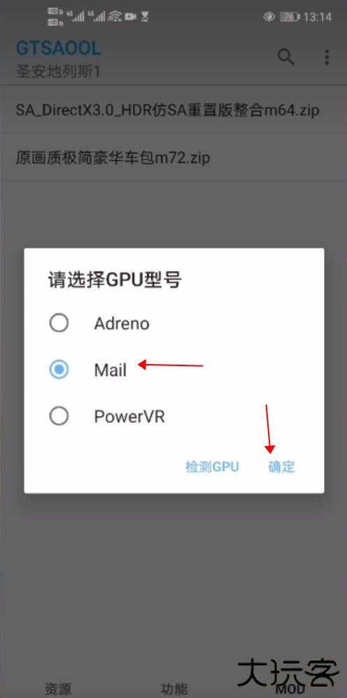 4、下载的MOD整合包会这里显示,点击可以解压整合包至游戏目录,长按可以删除。解压过程会提示选择GPU格式,自己选择与手机对应的即可。