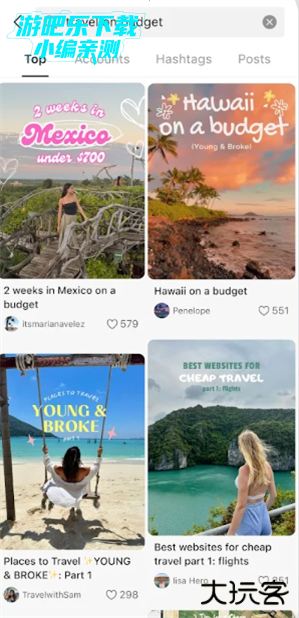 用户们也可以直接搜索自己感兴趣的话题,例如旅游话题