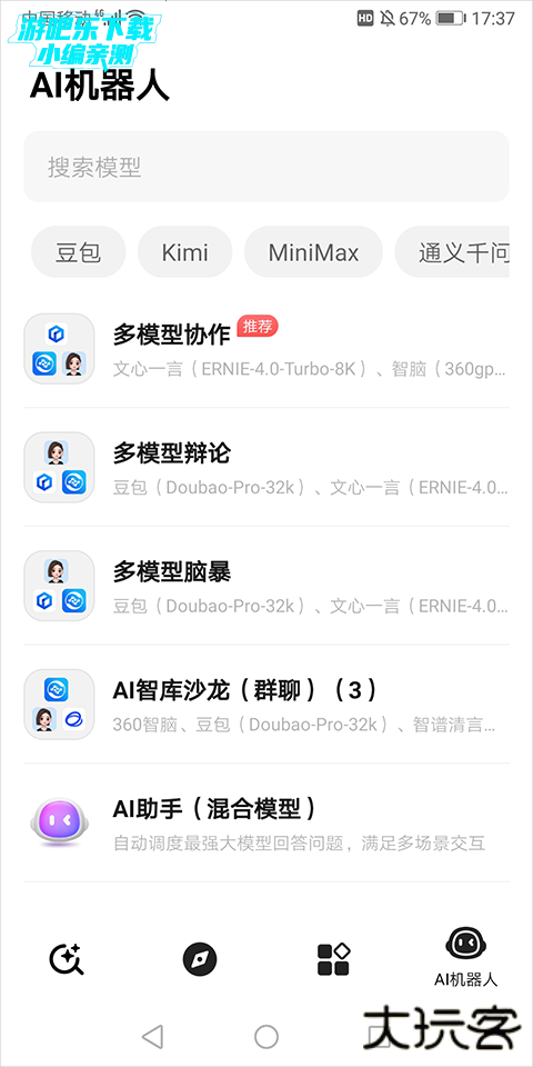 6、AI机器人功能让你随意切换各大主流大模型进行多模型协作搜索,让搜索内容更有参考价值。