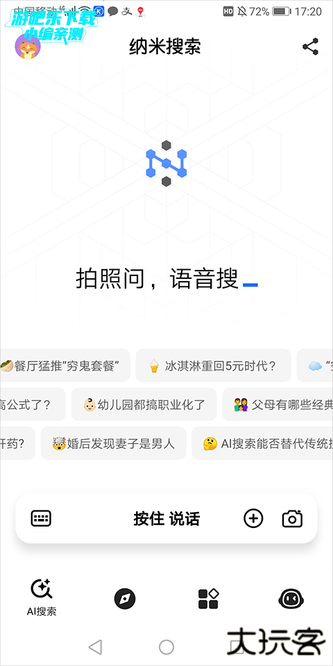 1、AI搜索功能中的语音拍照搜索让你随手一拍就可以像给朋友看图片一样对它进行知识的询问。