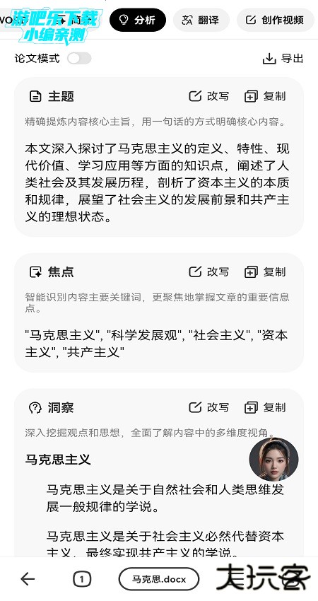 自动分析音视频内容,提炼关键点,节省观看和听取时间。