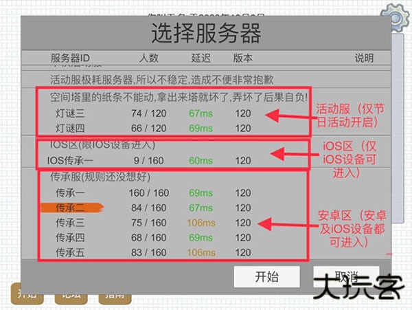 四、每个服务器相互独立,在任一服务器内创造游玩都不影响另一服务器的内容。