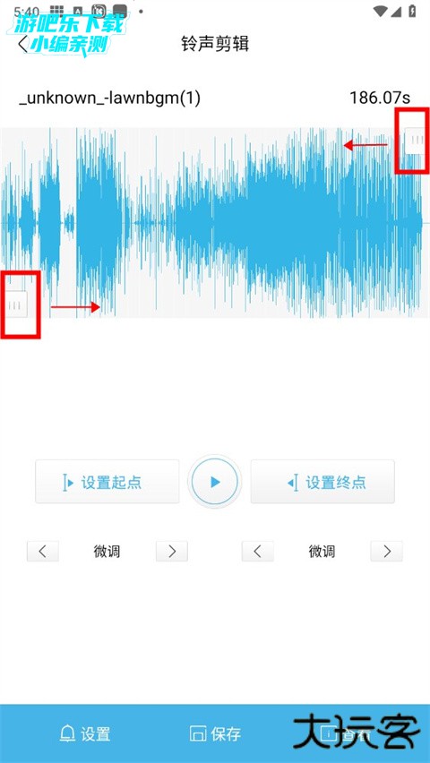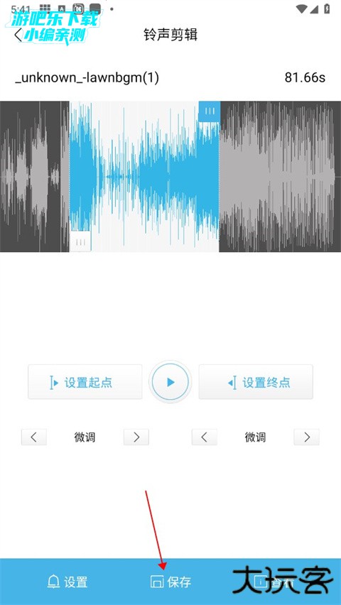 5、进入剪辑界面,拖动前后进度条可进行调整,选取你想要的铃声片段;