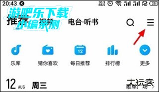 1、在本站下载安装酷我音乐app,运行软件,在首页点击右上角的【菜单】;