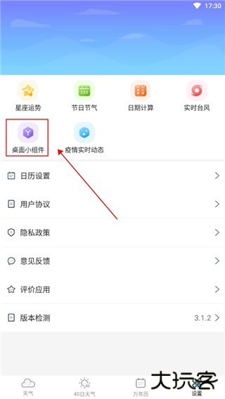 2、在设置页面中选择【桌面小组件】。