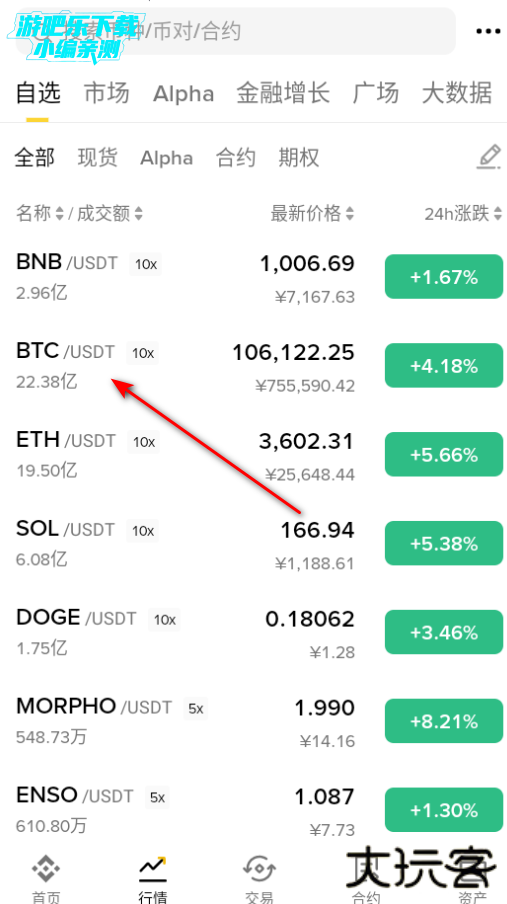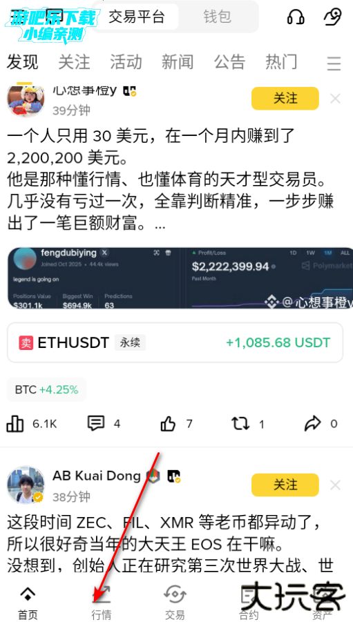 下载进入比安钱包软件,点击行情