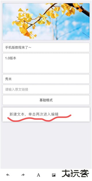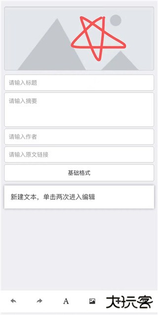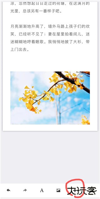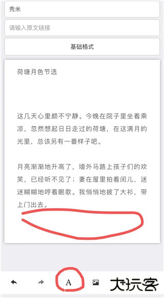 此外,当没有选中正文编辑区域里任何组件时,点击编辑页面底部的“A”图标,可以添加空白的文字组件在正文编辑区域的后面。