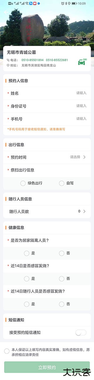 4、然后进入,完善预约信息,点击“立即预约”(如下图所示);