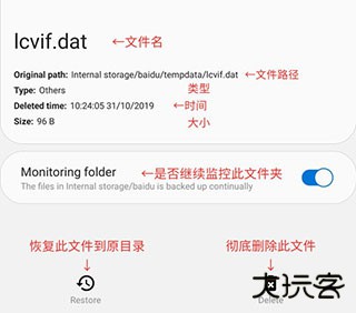 效果很像PC上的回收站功能,通过在后台持续全局监控手机存储变化,当有文件被删除,等情况时,将文件移到文件卫士里面统一管理。
