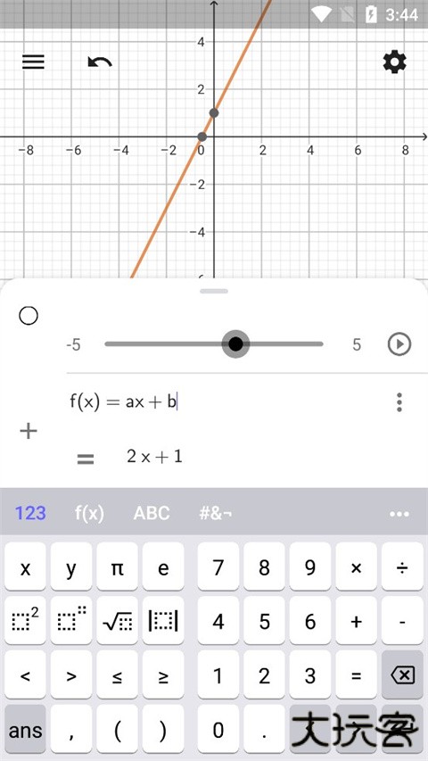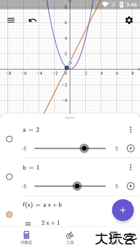 1、在输入栏输入一次函数f(x)=a·x+b。变量a和b的滑动条将自动创建。