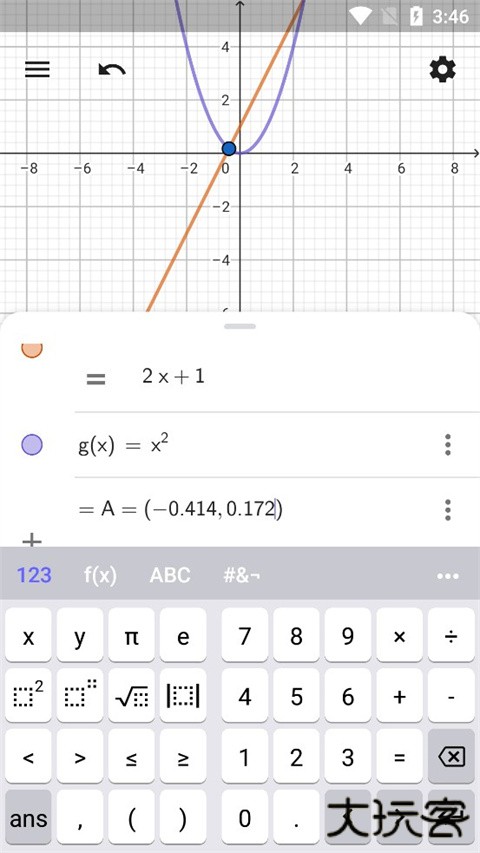 注意:您也可以使用工具栏中的“交点”工具,并选择这两个函数来创建交点。