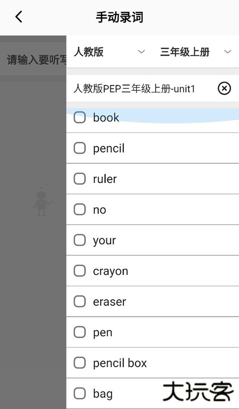 用户可以选择自己接下来要听写的单词,如果是给自己孩子听写,建议全选。