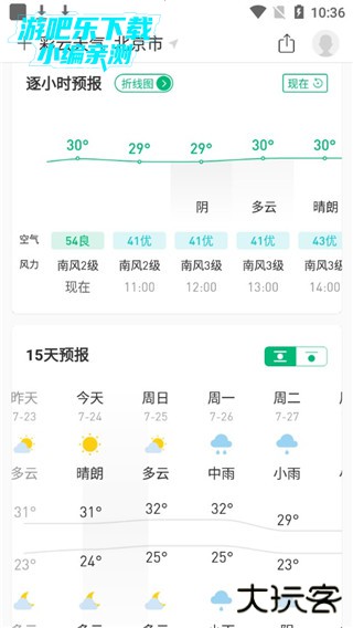 2、软件支持每个小时播报天气情况,更有15天预报让你了解之后的天气;
