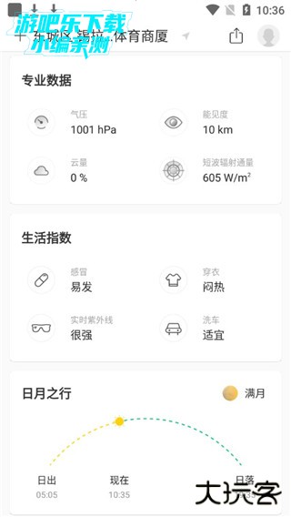 3、软件支持专业数据查看,比如气压、云量,还支持查看生活指数;