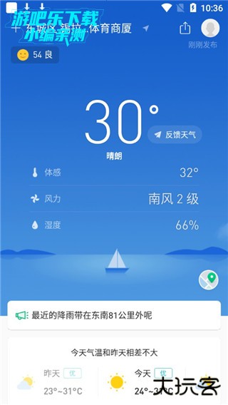 1、首先在本站下载软件进入首页,可以看到目前天气,记得要打开你所在的位置;