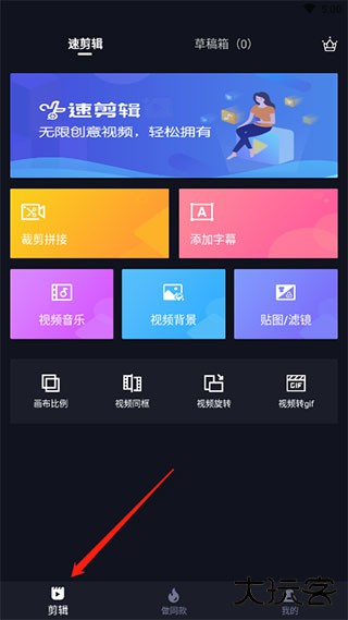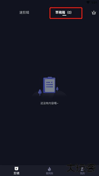在剪辑页面中上面有草稿箱,没有剪辑完的视频都会保存在草稿箱中