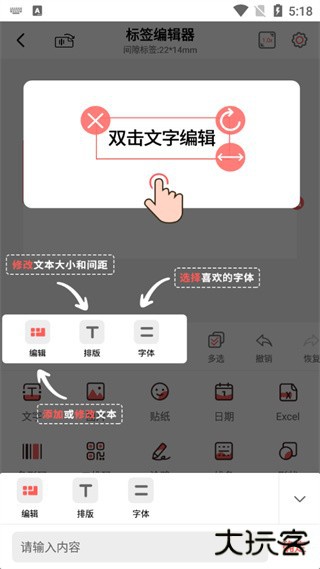 3、点击编辑可以添加或修改文本,点击排版可以修改文本大小和间距,点击字体用户可以根据需求选择字体;