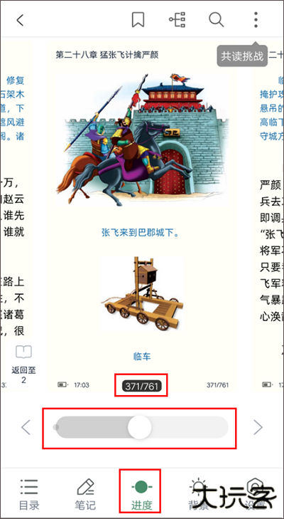 ③进度:在阅读页点击正中间呼出菜单,点击[进度],通过拖动进度条,可快捷跳转到相应页数。