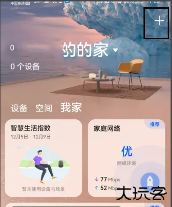 2、将手机连接无线网络后,进入 智慧生活 App 首页,点击“+”,根据界面提示添加音箱,App 将自动扫描待配置的音箱。