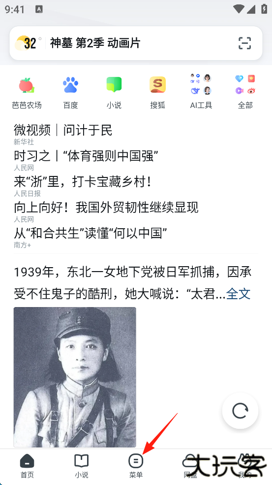 1、点击屏幕下方中间的“菜单”。