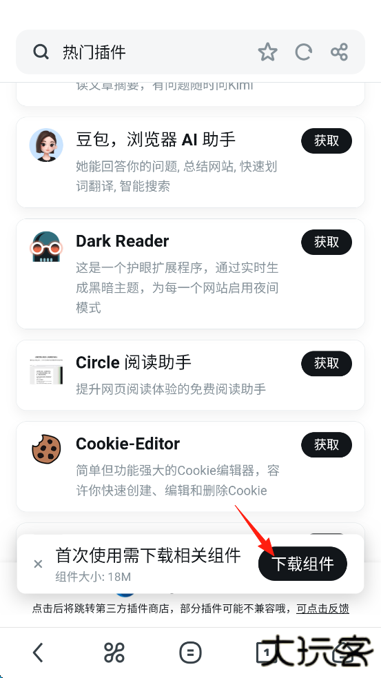 5、点击屏幕右下角的“下载组件”。