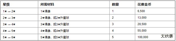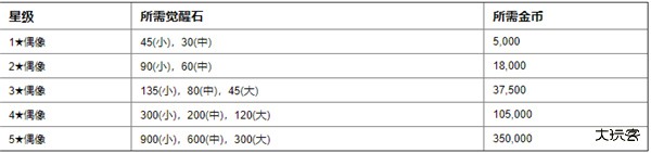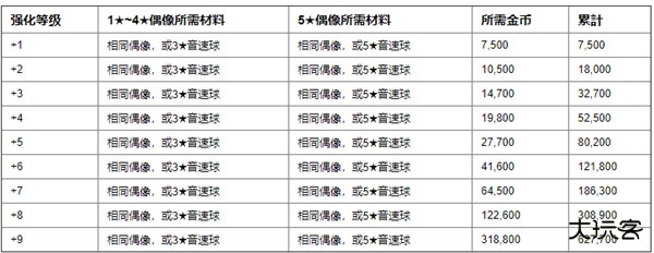 以下为偶像每强化一级所消耗的金币,数量还是非常多的,所以初期最好还是不要随便提升1~2星的偶像,除非后期收藏。