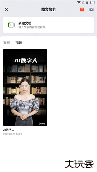 2、然后就是点击新建文档,仅需输入文字内容就可以开始制作视频了。
